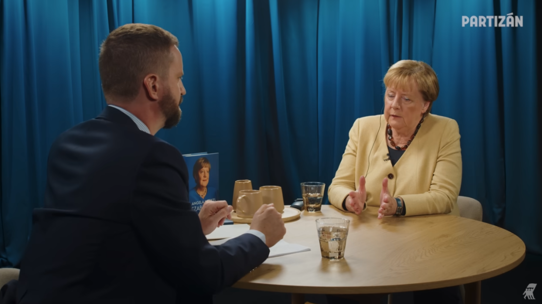 默克尔接受匈牙利媒体采访视频截图